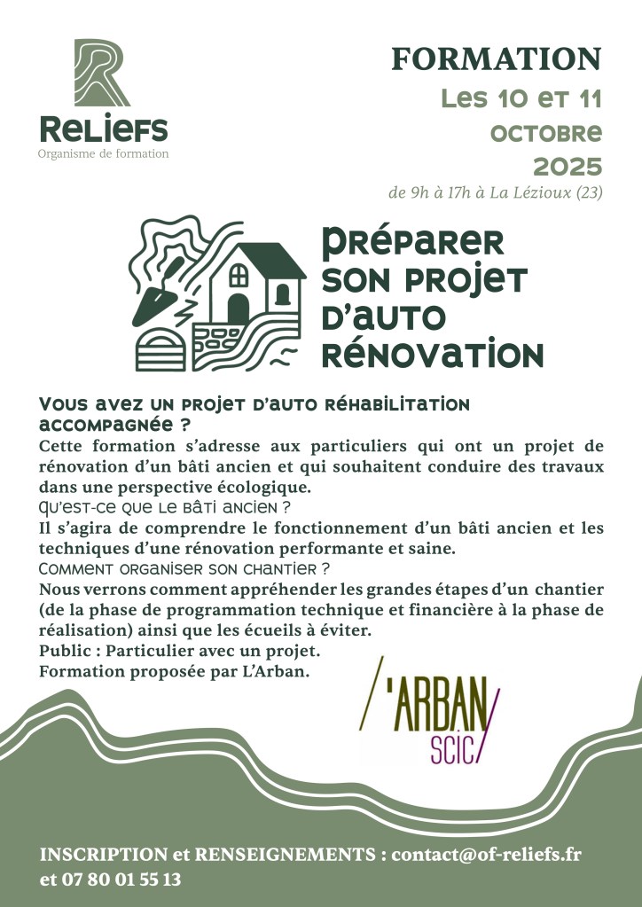 Cette formation s’adresse aux particuliers qui ont un projet de rénovation d’un bâti ancien et qui souhaitent conduire des travaux dans une perspective écologique.